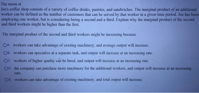 The Menu At Joe S Coffee Shop Consists Of A Variety Chegg Com